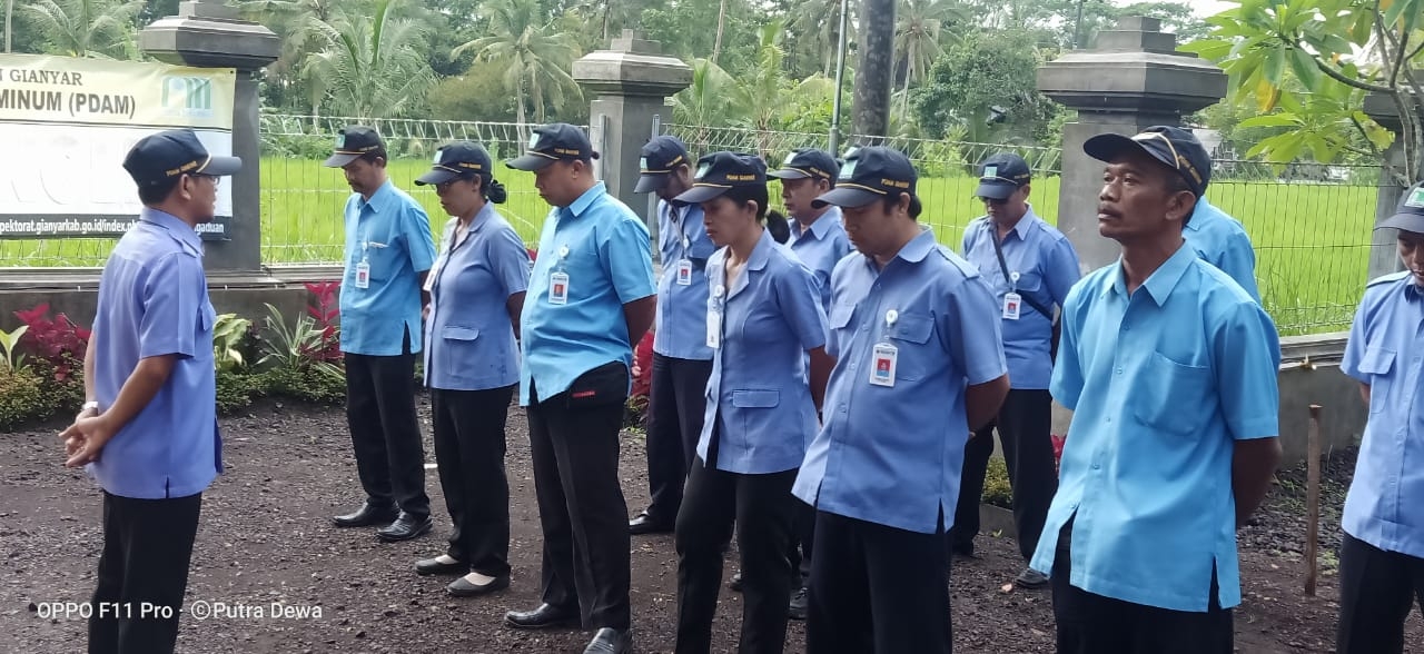 Apel Mingguan diikuti oleh seluruh pejabat dan pegawai di lingkungan Perumda Air Minum Tirta Sanjiwani Kabupaten Gianyar.